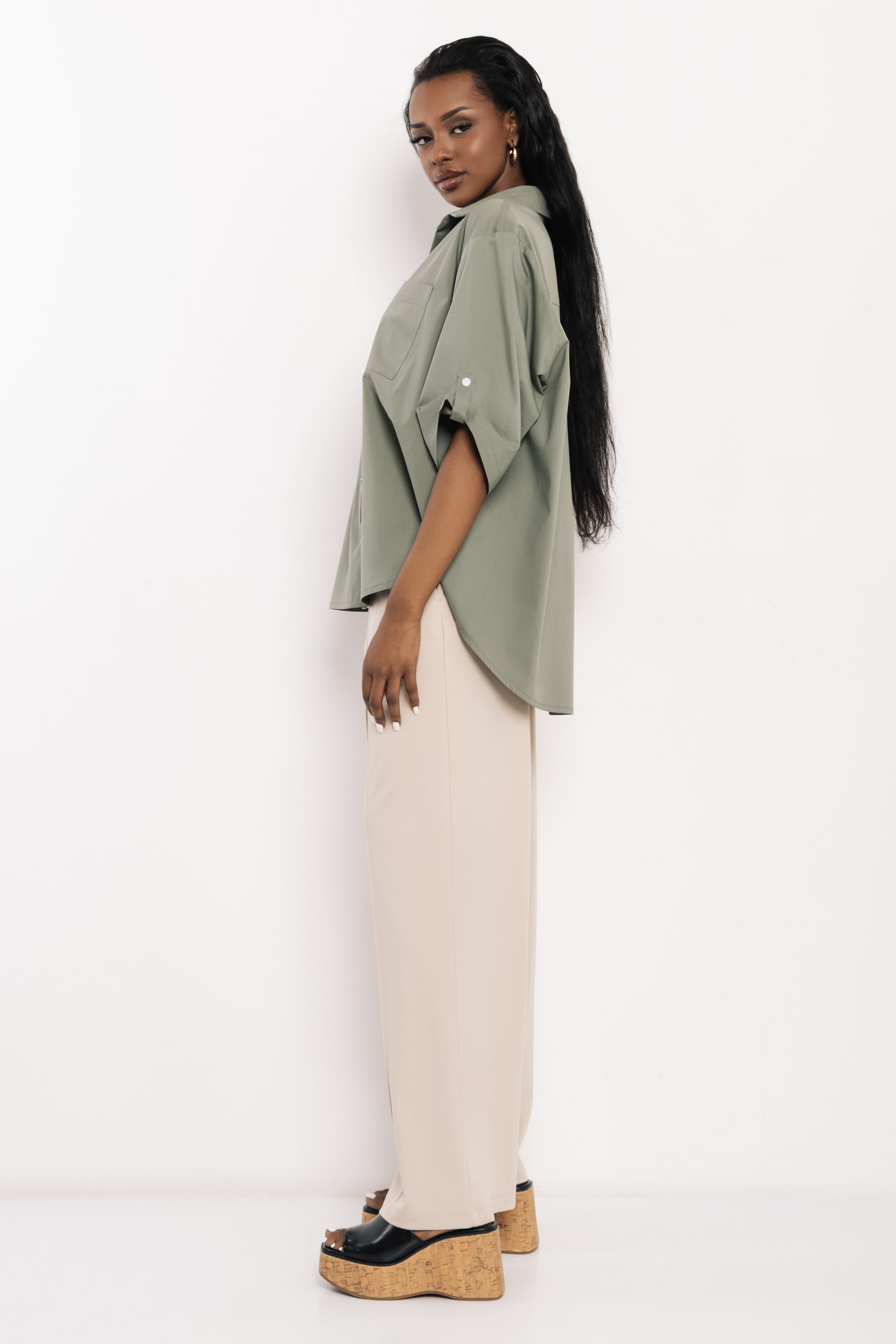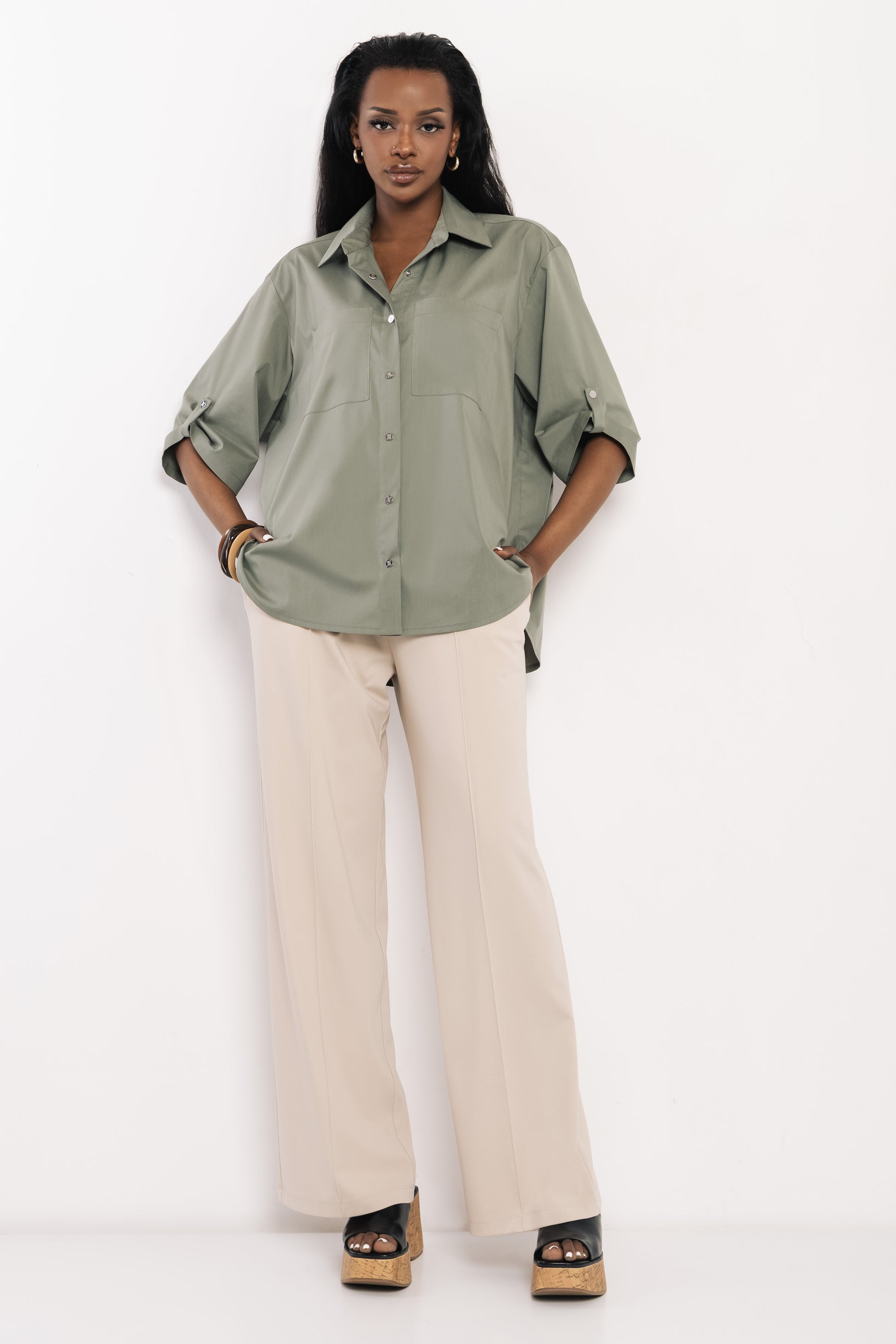 Az AMNESIA Kolum ing egy laza, karakteres darab, ami eleganciát visz a szettedbe. A lezser szabás és a letisztult vonalak miatt tökéletes választás hétköznapokra és elegánsabb összeállításokhoz is, amikor egy könnyed, mégis karakteres felsőre van szükséged. Puplin anyaga sima tapintású, könnyű és jól tartja a formáját, így egész nap komfortos viselet. Khaki és bézs színekben érhető el, egyméretes kialakítása pedig több alkaton is jól működik. Viseld önmagában egy nadrággal vagy lazán nyitva top fölé rétegezve, így többféle stílusban is kihasználhatod. Szerezd be az amnesia.hu webshopon, amíg elérhető!