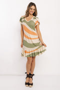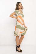 Az AMNESIA Krisi ruha egy nőies, mégis könnyed darab, ami egyszerre kényelmes és látványos. A hullámos minta friss, nyárias hangulatot ad, míg a finom fodros részletek játékossá teszik az összhatást.
