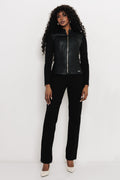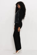 A kollekció műbőr nadrágjaival egységes, karakteres szettet alkot, de egy letisztult ruhára vagy felső–nadrág kombinációra rétegezve is jól működik. Irodai napokra, városi programokra és esti alkalmakra egyaránt ideális választás.