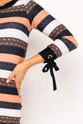 Az AMNESIA Melody ruha a nőies elegancia és a modern minták tökéletes találkozása. Az egyedi tervezésű, logómintás csíkozás különleges karaktert kölcsönöz ennek a darabnak, miközben a polyamid anyag finom fénye és kellemes tapintása komfortos viseletet biztosít. A testhez simuló szabás kiemeli az alakot, mégis kényelmes mozgásteret biztosít, így egyszerre praktikus és stílusos választás.