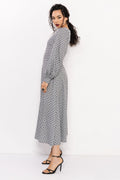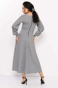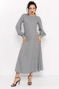 Az AMNESIA Meloni ruha a nőies elegancia megtestesítője, amely finom szabásvonalakkal és maxi hosszban kínál letisztult, mégis karakteres megjelenést. A hosszú ujjú, karcsúsított felsőrész és a bővülő szoknyarész tökéletes egyensúlyt alkot, miközben a könnyed esésű anyag mozgás közben is elegáns hatást kelt. A hátul cipzárral záródó fazon időtálló és stílusos választás bármilyen alkalomra. A latina anyag gondoskodik a kényelmes viseletről és a tartásról, így a ruha egész nap megőrzi formáját. A fekete–ekrü „A” mintás és az ekrü–fekete „A” mintás változatok közül választhatsz, amelyek különleges grafikájukkal azonnal magukra vonzzák a tekinteteket. A két méretváltozat (S-M és L-XL) biztosítja, hogy mindenki megtalálja a hozzá illő darabot. Ez a mintás ruha tökéletes társ üzleti találkozókon, családi eseményeken vagy esti programokon. Válassz hozzá letisztult kiegészítőket és magas sarkút, és élvezd, hogy minden pillanatban stílusos maradsz az amnesia.hu webshopból!