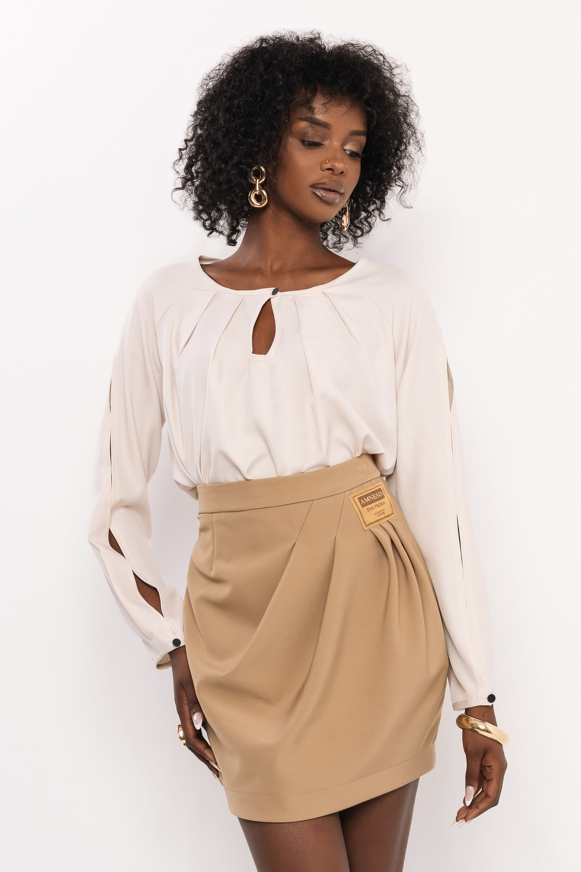 Az AMNESIA Meshi felső a különleges részletek kedvelőinek tökéletes választás. Könnyed latina anyagból készült, amely szép esésével és kellemes viseletével emeli ki a darab nőies karakterét. A fekete–ekrü „A” mintás változat modern, geometrikus, míg az egyszínű bézs verzió letisztult, elegáns alapdarabként illeszkedik a ruhatárba.