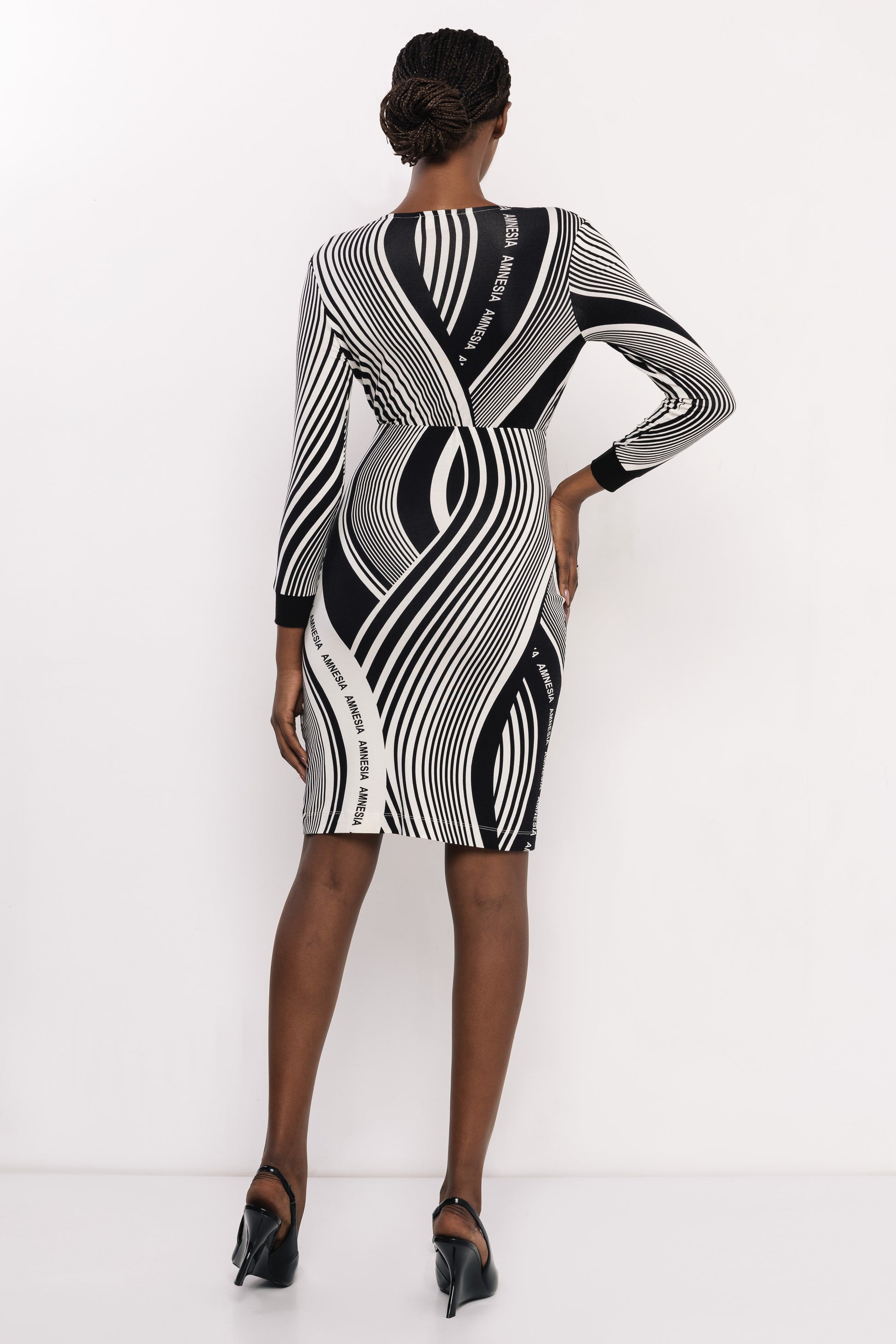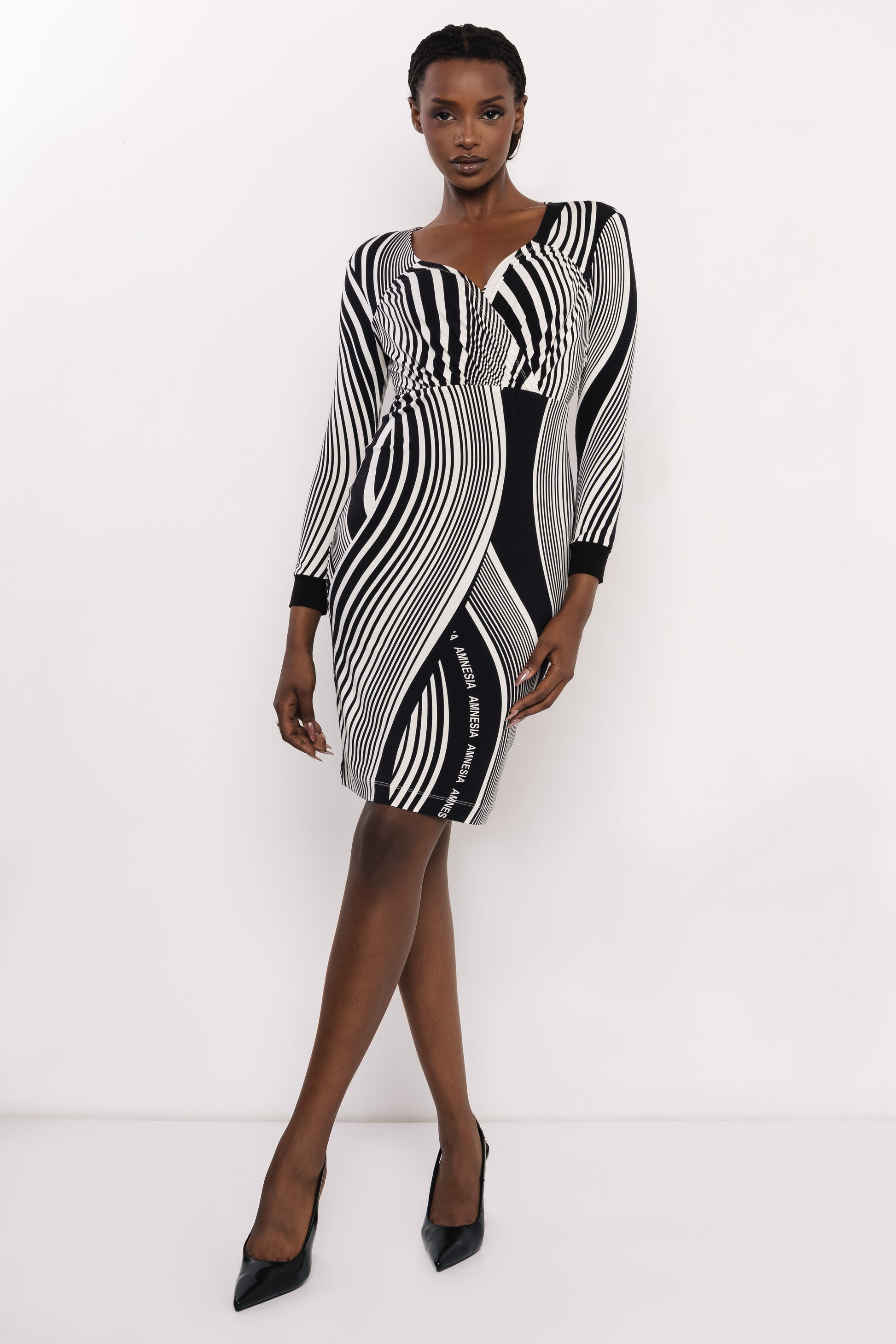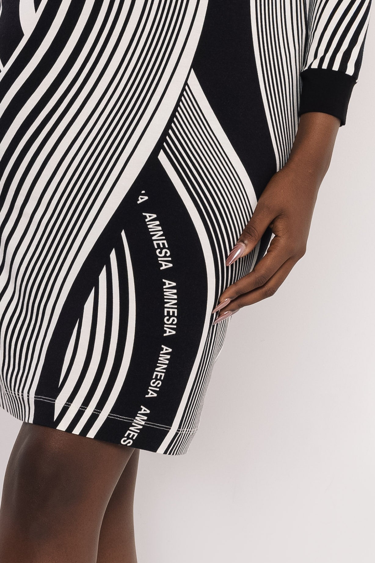 Az AMNESIA Monsa ruha az a darab, amelyben a nőies elegancia és a modern stílus találkozik. A figyelemfelkeltő fekete-fehér minta játékosan követi a test vonalait, kiemelve és hangsúlyozva a sziluettet. Puha viszkóz anyagból készült, egyméretes fazonja finoman simul a testre, miközben kényelmes viseletet biztosít. A V-kivágás és a hosszú ujj párosa klasszikus vonalvezetést ad, amelyet az AMNESIA logóval átszőtt, egyedi Optical Stripes minta tesz igazán különlegessé. Ez a limitált tervezésű nyomat a kollekció egyik legexkluzívabb eleme. Tedd teljessé megjelenésed egyszerű magassarkúval, és hagyd, hogy a ruha önmagáért beszéljen. Fedezd fel az AMNESIA Monsa ruhát az amnesia.hu webshopon, és engedd, hogy a gardróbod új kedvenc darabja legyen!