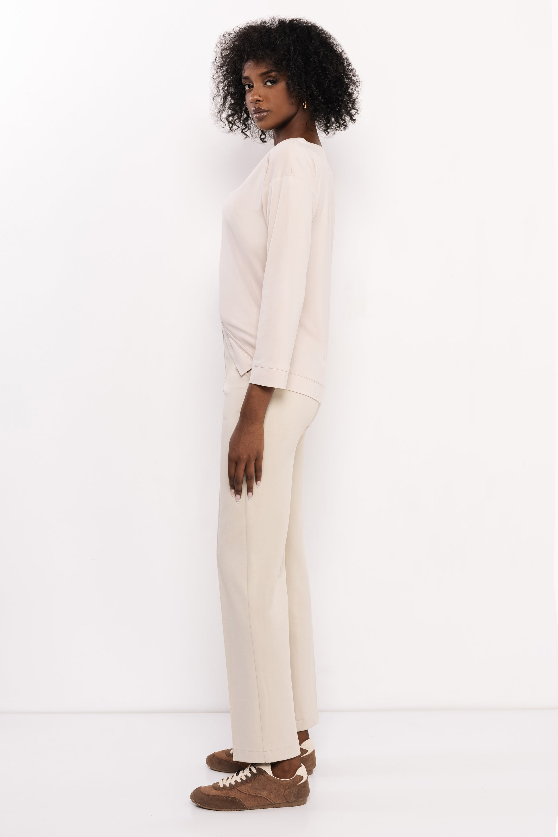 Az AMNESIA Olin felső egy igazi alapdarab, amely letisztult stílusával bármely ruhatárban megállja a helyét. A vékony punto anyag könnyed esésének és finom tapintásának köszönhetően légies viselet, amit egész nap szívesen hordhatsz. A modern nyakkivágás apró részlete különleges karaktert ad ennek a visszafogott, mégis stílusos darabnak. A fekete és bézs színváltozatok klasszikus eleganciát sugallnak, így könnyedén beilleszthetők az irodai megjelenéstől kezdve a hétköznapi szettekig. Az egyméretes fazon biztosítja a laza, komfortos illeszkedést, miközben a szabásvonalak nőies sziluettet teremtenek. Kombináld az AMNESIA Olin felsőt nadrágokkal vagy szoknyákkal szettben: válaszd például az AMNESIA Bloss nadrágot a letisztult összhatáshoz, vagy egy elegáns szoknyát, ha nőiesebb megjelenést szeretnél. Szerezd be az amnesia.hu webshopon, amíg elérhető!
