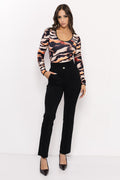 Az AMNESIA Olina body egy sokoldalú alapdarab, amely minden ruhatárban helyet követel magának. Vékony punto és kimo anyagának köszönhetően rugalmas, finom esésű és testhez simuló, így egyszerre biztosít kényelmet és stílusos megjelenést. A három színváltozat – márvány mintás, bordó és fekete – lehetővé teszi, hogy minden alkalomhoz megtaláld a tökéletes darabot. A klasszikus kerek nyakkivágás kontrasztos szegéllyel kiemeli a dekoltázst, a hosszú ujj pedig elegáns vonalvezetést ad. Testhez simuló fazonja tökéletesen illeszkedik, kiemeli az alakot, és könnyedén kombinálható bármely stílusban. Az AMNESIA nadrágokkal vagy szoknyákkal párosítva nőies, vagány vagy épp letisztult szettek alapja lehet. Ha szeretnél egy sokoldalú bodyt, ami minden helyzetben megállja a helyét, akkor az Olina darabot most érdemes megvásárolni az amnesia.hu webshopon!