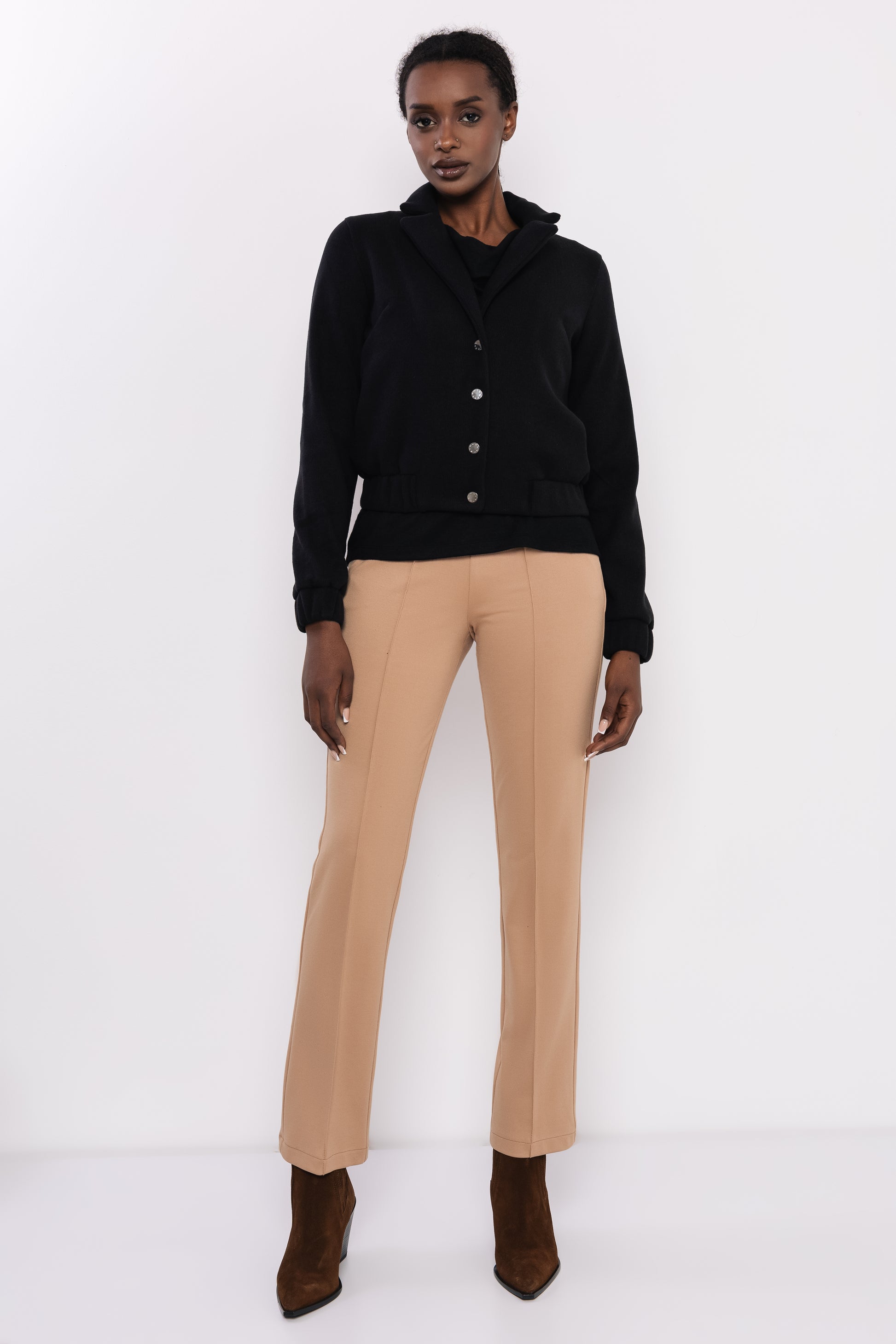 Az AMNESIA Oscar dzseki modern, mégis klasszikus darab, amely egyszerre elegáns és lezser. A kabátszövet anyag tartást ad és melegen tart, miközben kényelmes viselet a hűvösebb napokon. A rövid fazon nőies arányokat teremt, a visszahajtott gallér pedig elegáns részlet, amely kiemeli a dzseki karakterét. Az elülső gombolás és a hátul elhelyezett logó címke a márka egyedi stílusát hangsúlyozza. S, M, L és XL méretekben elérhető, így mindenki megtalálhatja a számára ideális fazont. Két klasszikus árnyalatban, fekete és bézs színekben választható, amelyek könnyedén beilleszthetők bármely gardróbba. Viseld farmerrel és basic pólóval hétköznapokra, kombináld AMNESIA nadrágokkal vagy szoknyákkal egy trendi, nőies megjelenésért, vagy dobd fel csizmával és kiegészítőkkel a hűvösebb napokon. Az AMNESIA Oscar dzseki az a darab, amely sokoldalúságával minden alkalomra stílusos választás – fedezd fel az amnesia.hu webshopon, és vidd haza a szezon egyik legmenőbb dzsekijét!