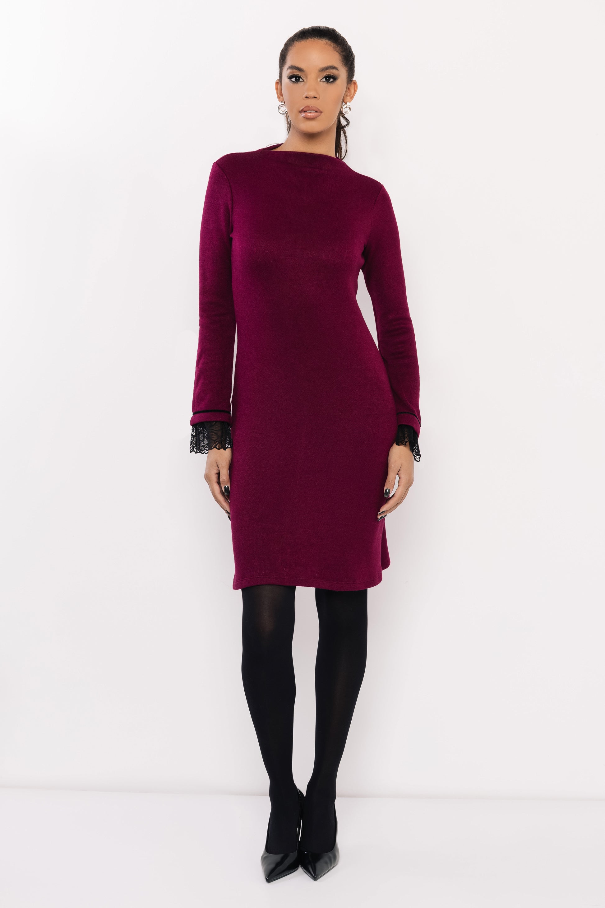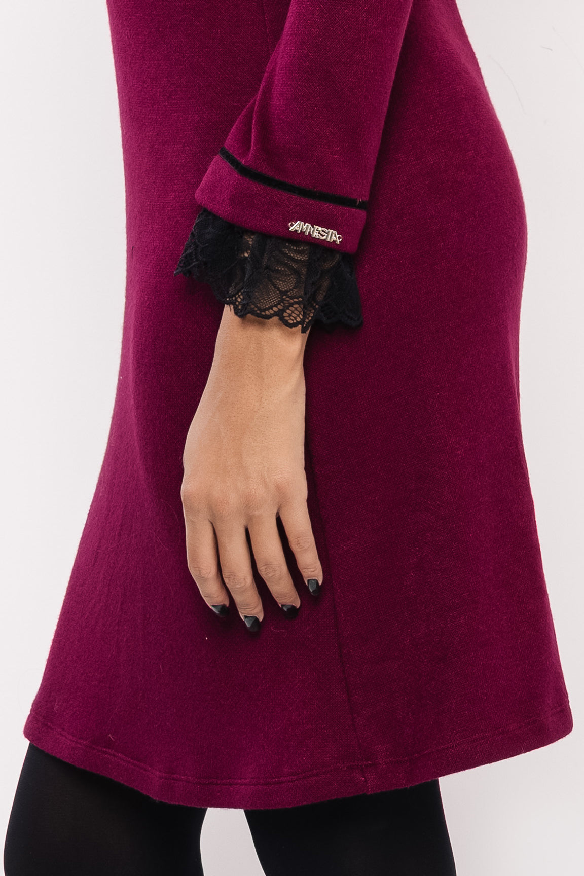Az AMNESIA Ottawa ruha visszafogott eleganciájával és különleges részleteivel tűnik ki. A vastag kötött anyag kényelmes és meleg, az enyhén A-vonalú szabás pedig minden alakon szépen mutat. A csipkés ujjvég nőies, romantikus részlet, ami feldobja a letisztult vonalakat.
