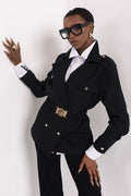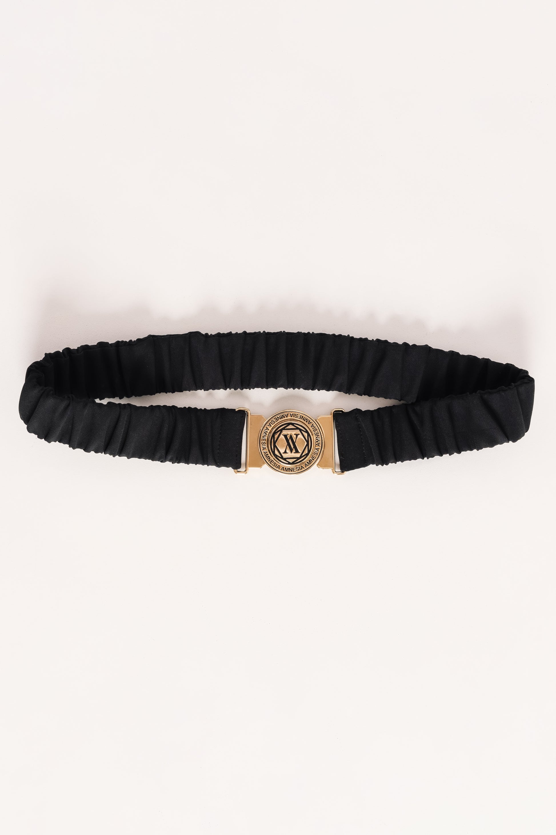 A fekete alapot elegáns arany csat díszíti, amelyet az AMNESIA logóval díszítettünk, ezzel is hangsúlyozva a márka ikonikus stílusát. Ez a kiegészítő egyszerre modern és időtálló, bármilyen ruhadarabot azonnal különlegessé tesz.