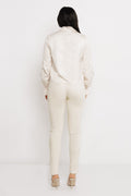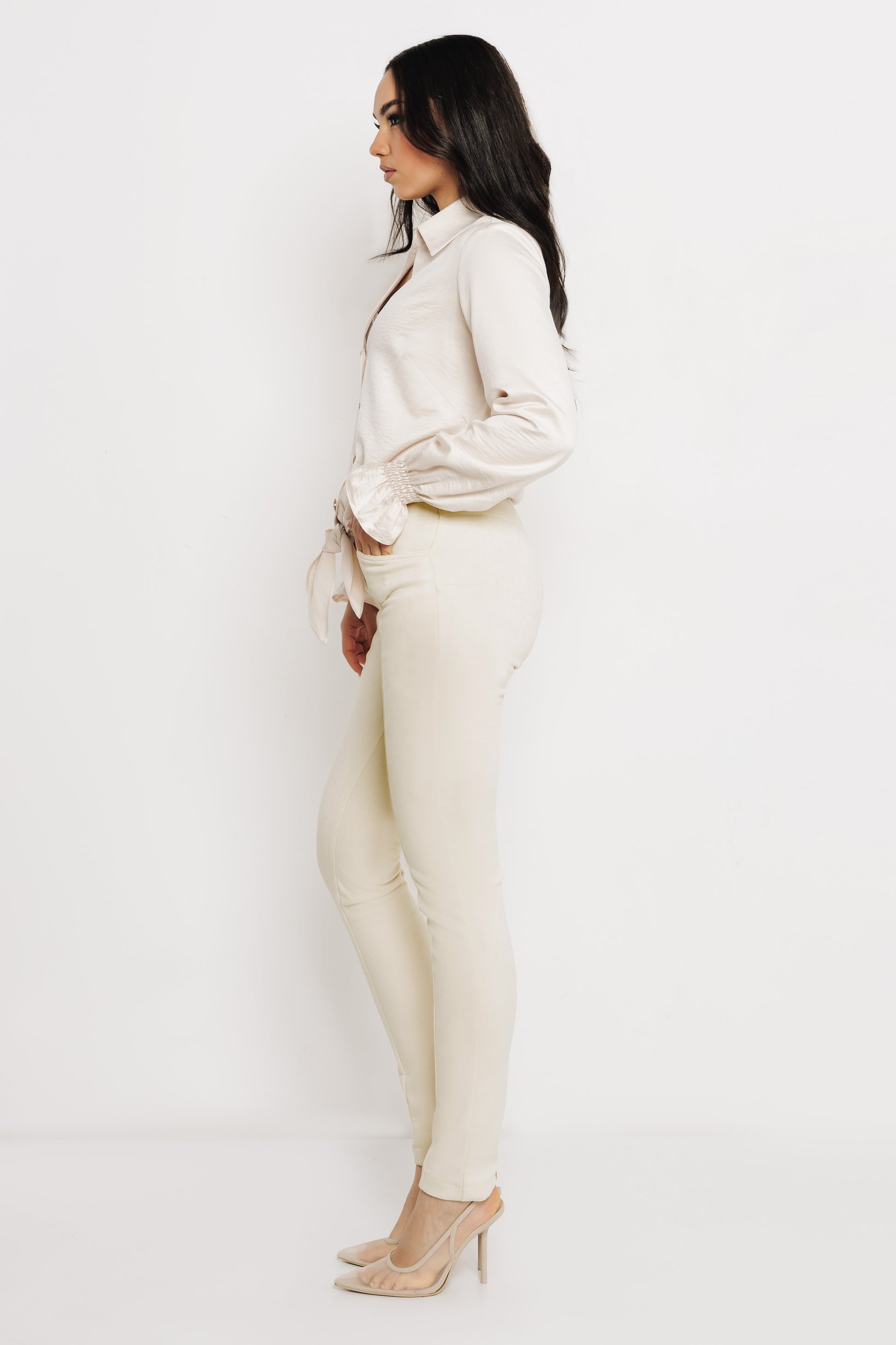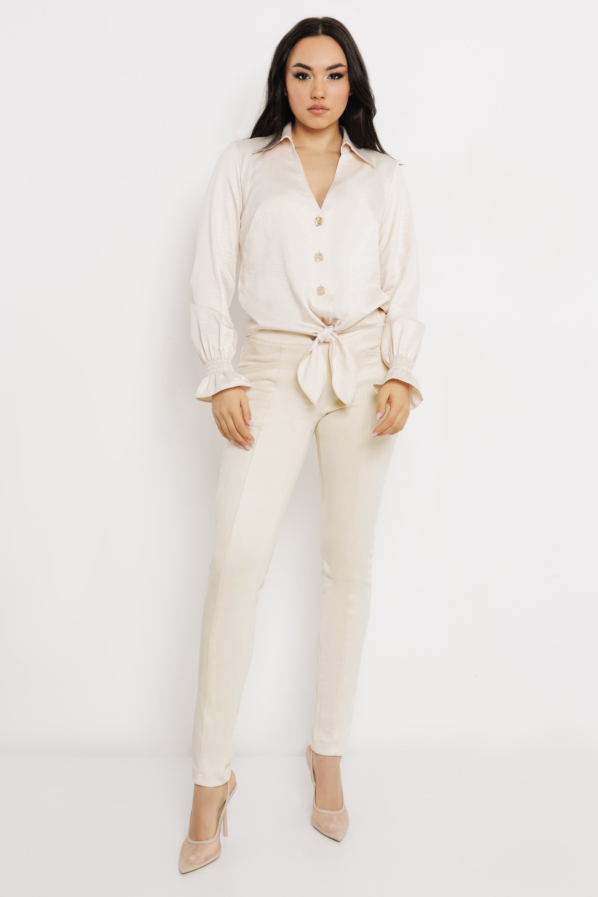 Az AMNESIA Raffi blúz a tavaszi AMNESIA kollekció egyik legcsinosabb, „felkapom és kész” darabja. A gallér, a fém gombok és az elöl megköthető rész olyan összhatást ad, amitől az egész szetted elegánsnak és nőiesnek hat. Krémben és világoskékben is igazi alapdarab, amit sokféle hangulathoz tudsz igazítani. Gyűrt selyem anyagból készül, ami könnyű, lágy esésű és elegáns megjelenést ad. A blúz elején gombsor fut végig, a derekánál megkötős rész szépen formálja az összképet, az ujja pedig gumírozott mandzsettával és finom fodros lezárással készült. S/M és L/XL méretben érhető el, krém és világoskék színben. Nadrággal és szoknyával is jól működik: bézs vagy fekete alsórésszel letisztult, irodai szettet kapsz. Egy elegáns cipővel és ékszerrel simán viheted vacsorára vagy eseményre is. Szerezd be az amnesia.hu webshopon, amíg elérhető!