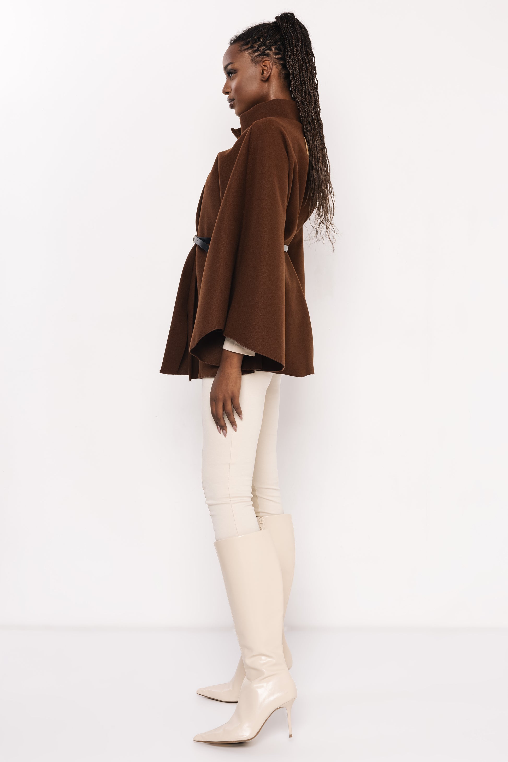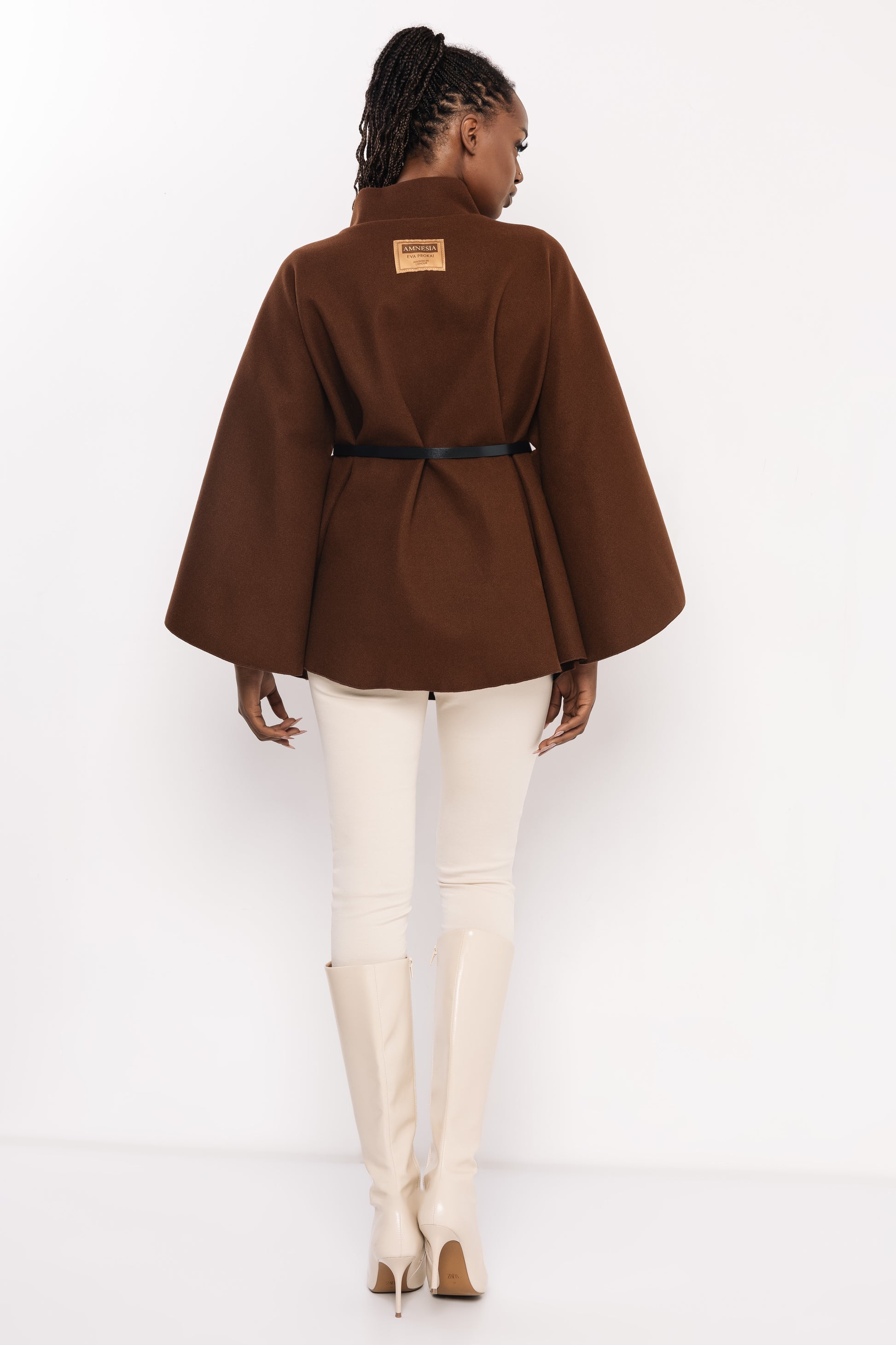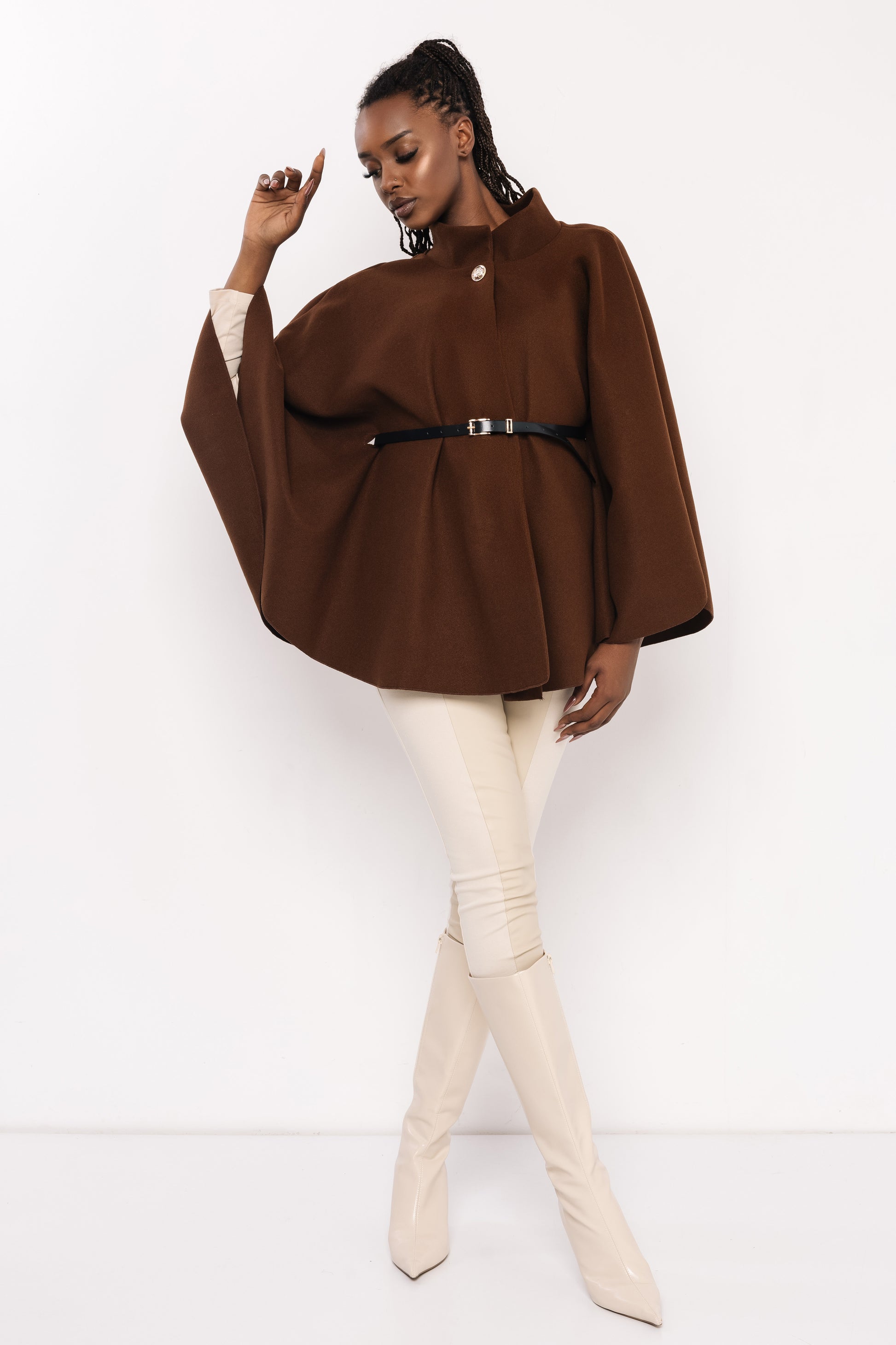 Klasszikus barna, bézs, melange szürke és burgundi árnyalataiban minden szettbe könnyen beilleszthető. A pelerin különleges esése és időtlen szabása stílusos megjelenést kölcsönöz, akár hétköznapokra, akár alkalmi összeállításokra választod.