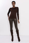 A letisztult, kerek nyakkivágás és a hosszított fazon sokoldalúan kombinálhatóvá teszi a felsőt – viselheted nadrággal, szoknyával, akár egy zakó alatt is. A könnyed, rugalmas anyag miatt ideális egész napos viselethez, legyen szó munkáról, városi programról vagy hétvégi kikapcsolódásról.