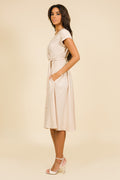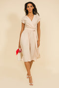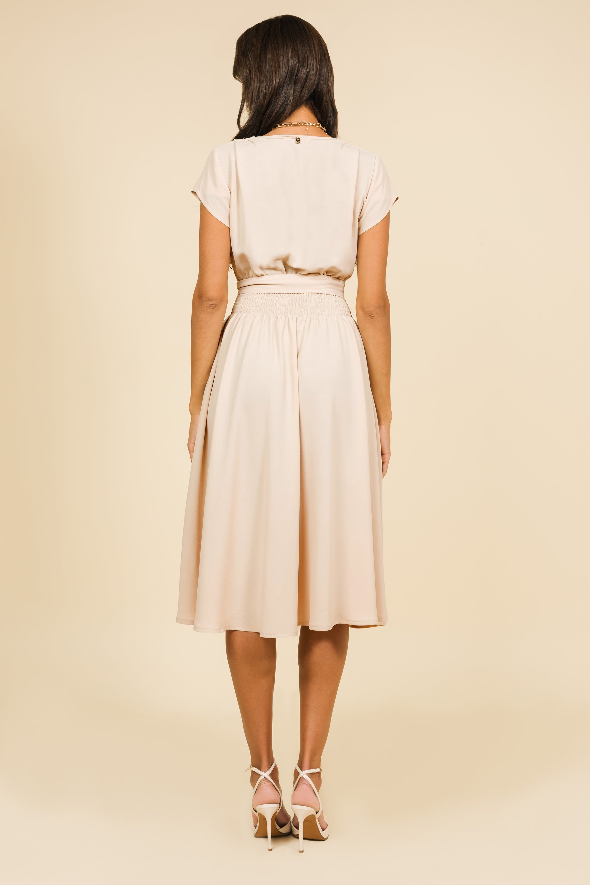 Az AMNESIA Tarao ruha könnyű zsorzsett anyagból készült, amely lágyan omlik és kényelmes viseletet biztosít. A mély V-kivágású, átlapolt felsőrész elegánsan kiemeli a dekoltázst, a finoman terülő, hajtott ujjvonalak pedig nőies bájt adnak. A magasított, rugalmas derékrész karcsúsítja a sziluettet, míg alatta a bővülő, midi hosszúságú szoknyarész kecses lebbenéssel követi minden lépésed. Elérhető klasszikus fekete, natúr bézs, vibráló neonpink és pasztell babakék árnyalatban is – válassz belőle, és hozd ki a legtöbbet a nyári napokból! Vidd magaddal a kedvenced, mielőtt elkapkodják!