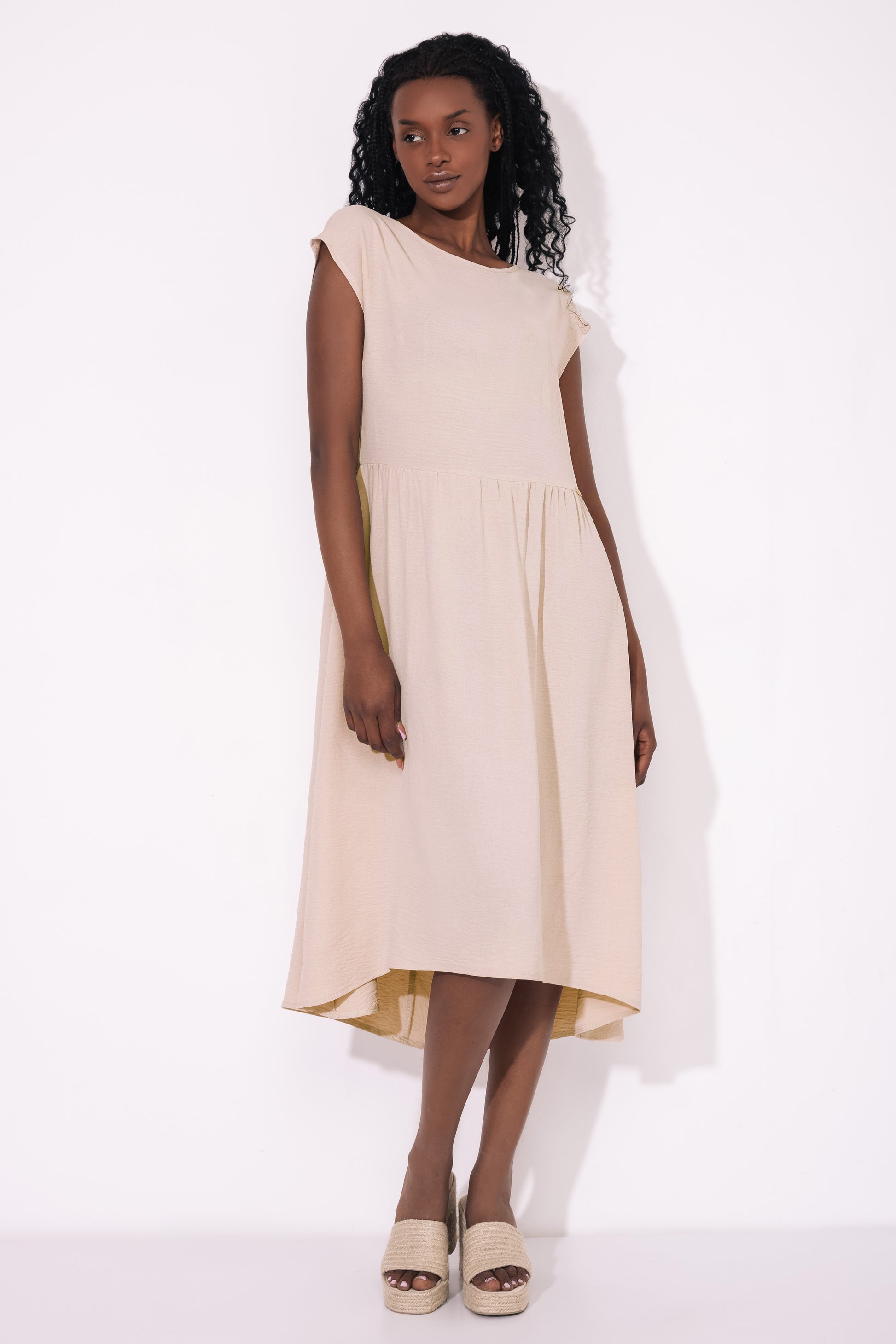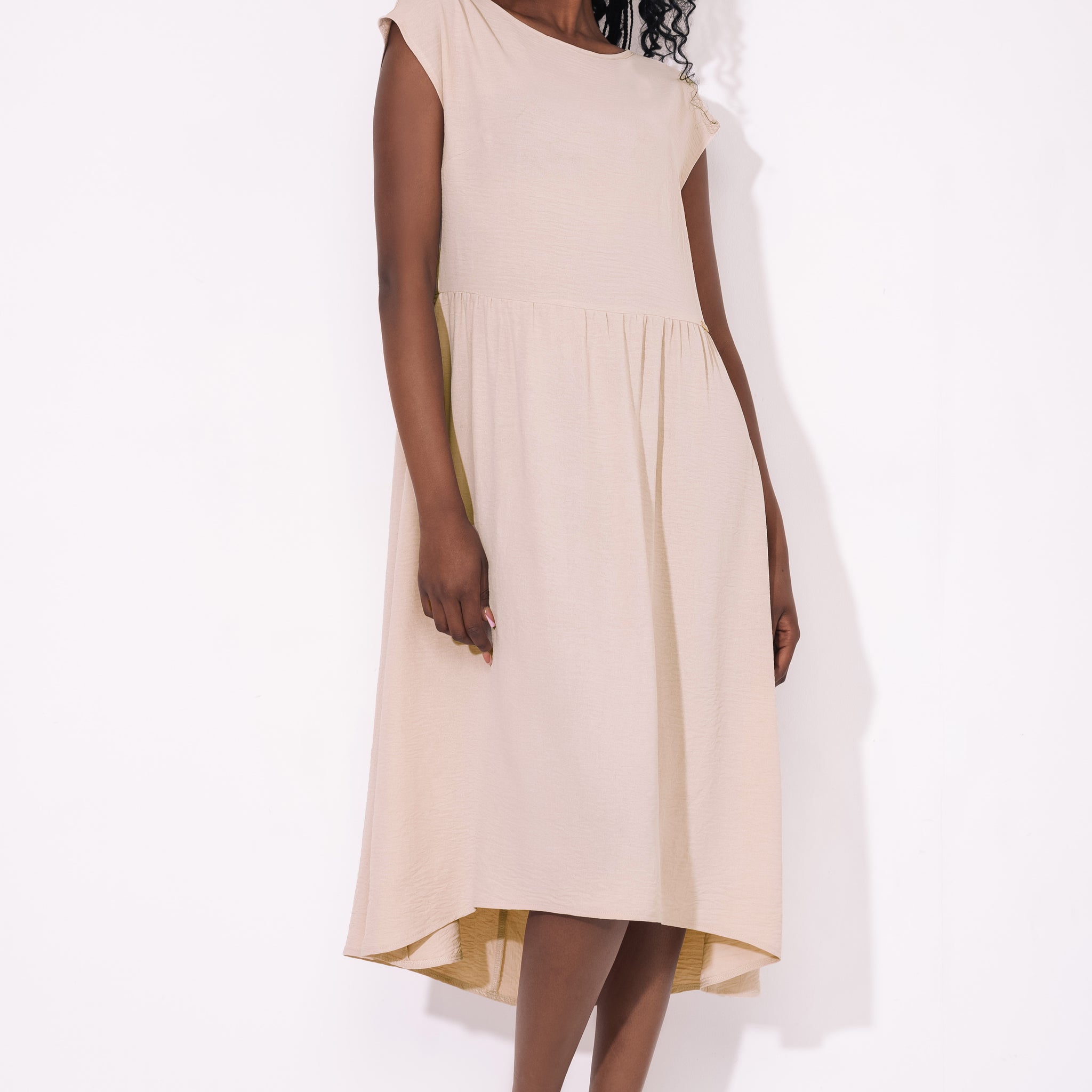Az AMNESIA Tihon ruha laza, mégis nőies vonalával visszafogott darab, amely hétköznapokon az irodába és egy különleges alkalomra egyaránt megállja a helyét. Anyaga könnyed, légies, nyáron is kényelmes viselet.