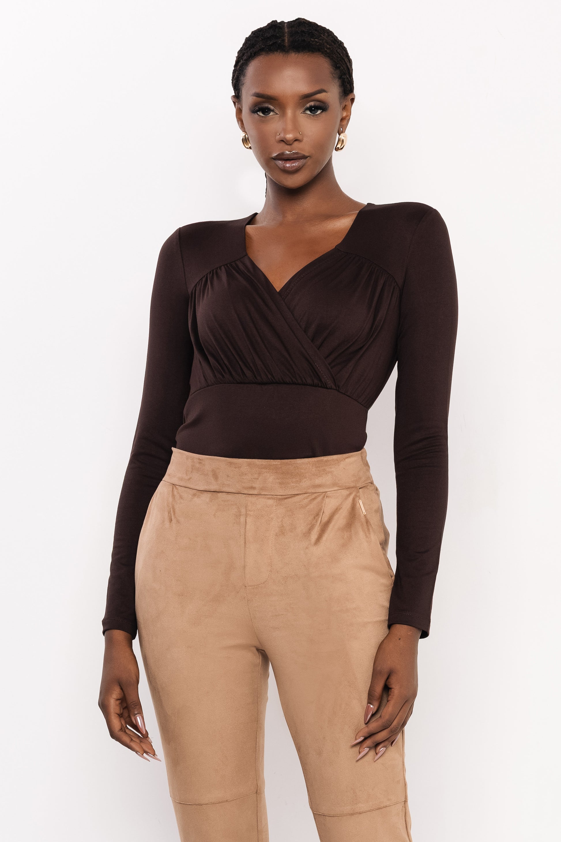 A felső bordó és csokoládé árnyalatokban érhető el, amelyek a 2025-ös őszi szezon meghatározó színei, könnyedén kombinálhatók a ruhatárad alapdarabjaival. Letisztult vonalai miatt jól illik hétköznapi és alkalmi összeállításokhoz is.