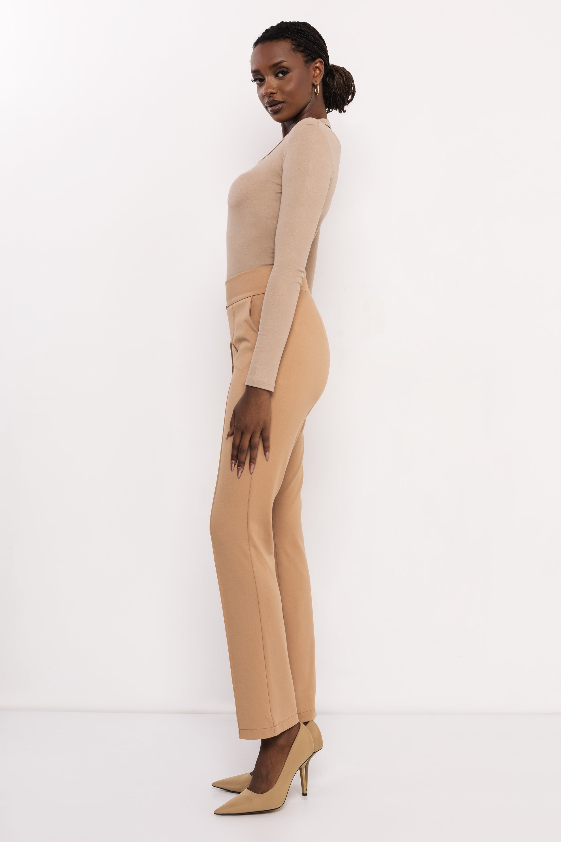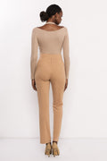 Az AMNESIA Veneto nadrág magasított derékrésszel és karcsúsított szabásvonallal készül, amely optikailag nyújtja az alakot és elegáns tartást ad. A punto anyag rugalmassága biztosítja, hogy a nadrág egész nap komfortos viselet legyen, miközben formálja és kiemeli a nőies vonalakat. A vasalt él hatású díszvarrás letisztult, klasszikus karaktert kölcsönöz, amely bármilyen stílusban megállja a helyét. Camel és fekete színben, S-XL méretben érhető el, így könnyen illeszthető minden ruhatárba. A visszafogott fém logódísz elegáns részlet, amely finoman utal a márka egyediségére. Tökéletesen kombinálható AMNESIA felsőkkel és ingekkel, legyen szó hétköznapi eleganciáról vagy irodai megjelenésről. Válaszd az AMNESIA Veneto nadrágot, ha egy időtálló, sokoldalú alapdarabbal szeretnéd feldobni a gardróbod – kattints most az amnesia.hu webshopra, és vedd meg a sajátodat!