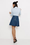 Az AMNESIA Vina szoknya a klasszikus farmer szoknyát emeli új szintre letisztult szabásával és igényes részleteivel. Rövid fazonja fiatalos, így könnyen beilleszthető a mindennapi és az alkalmi ruhatárba is. Olyan darab, amit egy elegánsabb felsővel és egy egyszerű toppal is viselhetsz. Farmer anyagból készült, amely stabil tartást ad és szépen formálja az alakot. A magasabb derekú kialakítás és a díszített zsebfedők strukturált megjelenést biztosítanak. Farmerkék színben készül, S, M és L méretben. Viseld az AMNESIA Biana zakóval együtt, ha komplett, összehangolt farmer szettet szeretnél, vagy párosítsd az AMNESIA Reilly blúzzal egy világosabb, elegánsabb összeállításhoz. Magassarkúval nőies, loaferral visszafogottabb hatást érhetsz el. Szerezd be az amnesia.hu webshopon, amíg elérhető!