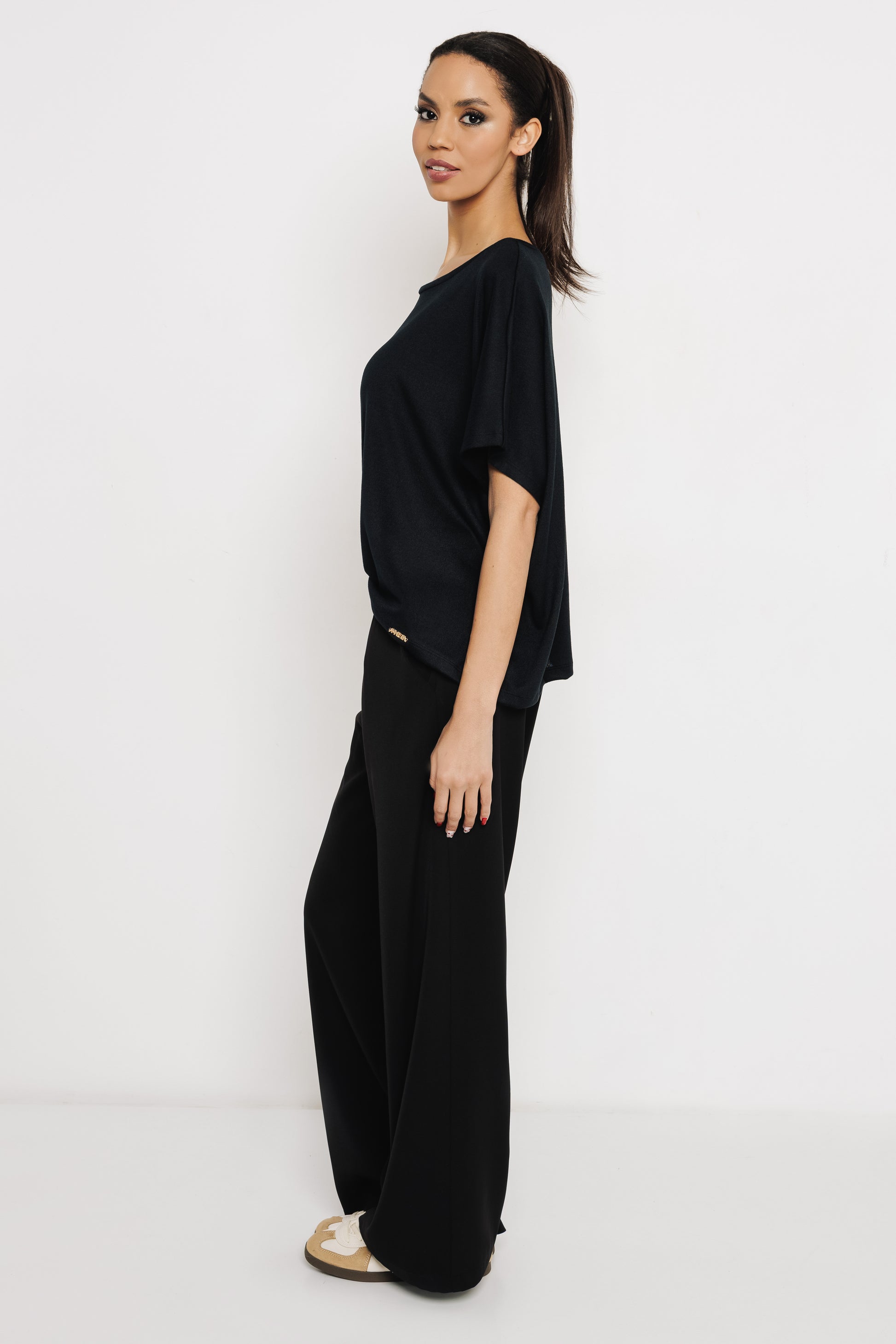 Az AMNESIA Wagler nadrág egy könnyed, nőies darab, amely szépen nyújtja az alakot a hosszú, egyenes szárával. A magasabb derékrész arányos sziluettet ad, a lágy esés pedig elegáns mozgást biztosít. Ideális választás, ha kényelmes, mégis rendezett megjelenésre vágysz. Georgette anyagból készült, amely finom, légies hatást kelt viselés közben. A derékrésznél gumírozott kialakítás gondoskodik a kényelmes illeszkedésről. Púder, bézs és fekete színben érhető el, S/M és L/XL méretben, hogy megtaláld a számodra legjobbat. Viseld az AMNESIA Koraz felsővel, az AMNESIA Linta felsővel vagy az AMNESIA Zoja felsővel, ha egységes, stílusos szettet szeretnél. Szerezd be az amnesia.hu webshopon, amíg elérhető!