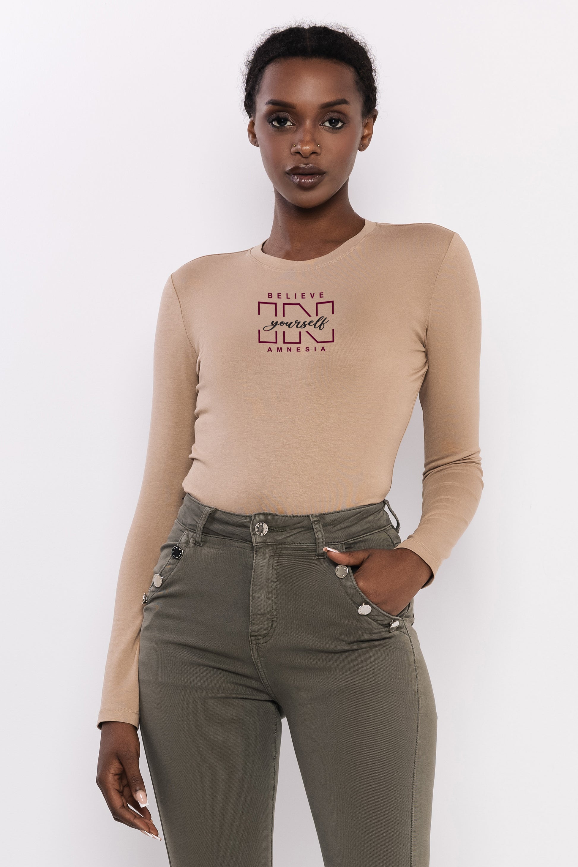 Az AMNESIA Xihin felső letisztult, mégis karakteres darab, amely minden szezonban megállja a helyét. Lágy, kellemes tapintású viszkóz anyaga finoman követi a test vonalát, miközben megőrzi a kényelmet és mozgásszabadságot. Klasszikus, kerek nyakkivágása és hosszú ujjai időtlen eleganciát kölcsönöznek, míg a mellrész közepén elhelyezett “Believe yourself” AMNESIA felirat sportosan nőies hangulatot ad a felsőnek. A sokoldalú fazon remekül kombinálható mindennapi és alkalmi összeállításokban is. Párosítsd irodába kockás nadrággal és blézerrel, vagy válaszd farmerrel és tornacipővel a hétköznapi, lezser stílusért. A logós részlet modern kontrasztot ad, így bőrdzsekivel és csizmával is jól működik egy őszi városi szettben. Egy alapdarab, ami a stílusos rétegezés kulcsa – bármilyen outfitbe könnyedén beilleszthető. Vedd meg az amnesia.hu webshopon és fedezd fel, mennyire sokoldalúan variálható az AMNESIA Xihin felső!